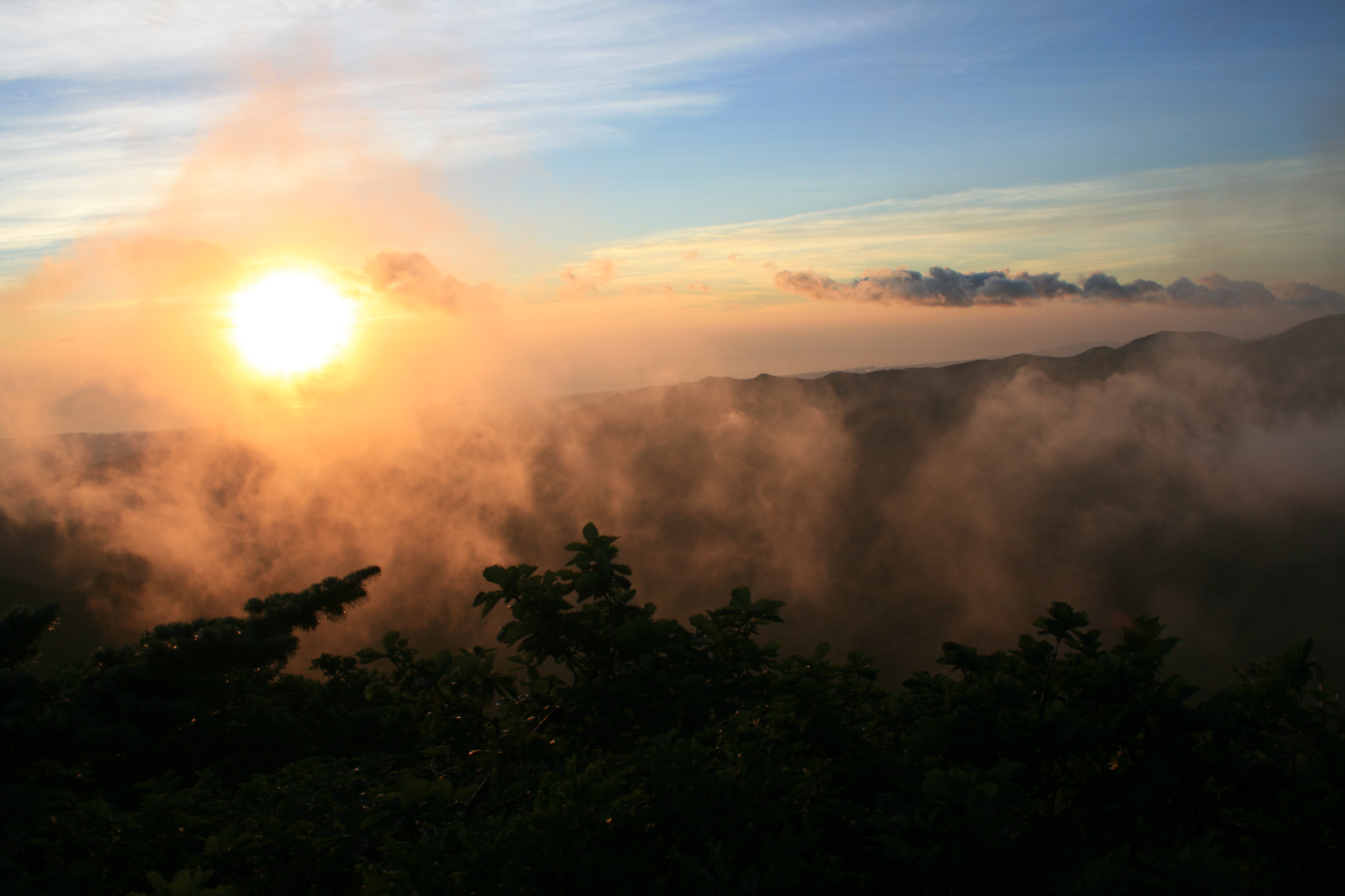 오늘 새벽 2시30분! 숙소를 출발 진고개 휴게소로 향했다. 노인봉 일출산행이다. 하늘의 별이 초롱초롱 반짝인다. 하지만, 어둠을 뚫고 오르는 동안 별빛은 온데 간데 없이 사라지고,,,,짙게 깔린 안개로 가득이다. 정상도착하자 안개때문에 태양이 제 빛을 발하지 못한다. 순식간에 왔다가 사라지는 안개틈새로 일출을 카메라에 담아보았다.
