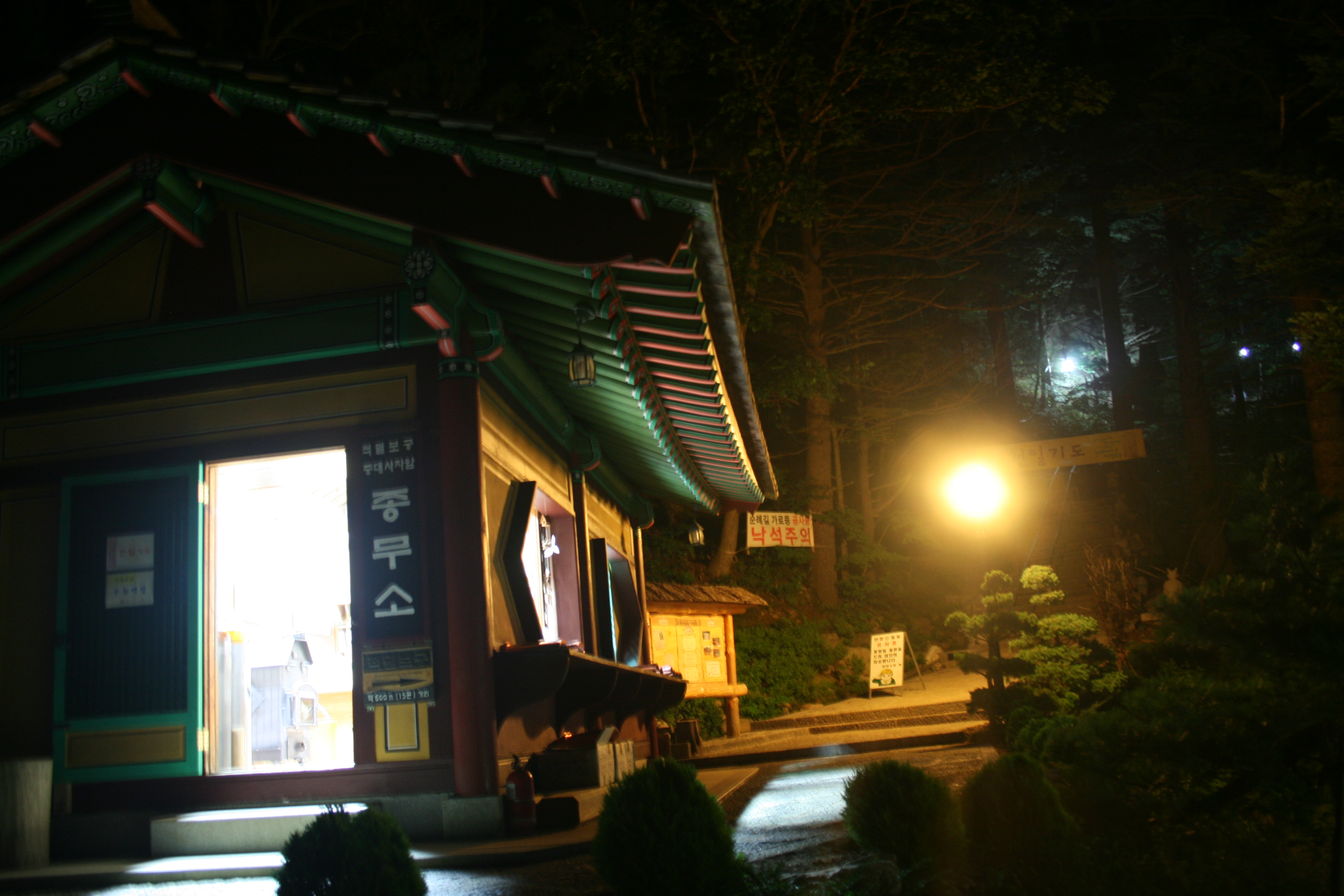 맑게 개인 하늘이 나를 유혹한다. 퇴근 후 곧바로 작은배낭하나 둘러메고 오대산으로 향했다. 오대산일몰은 어떤 모습일까??? 정상에서의 일몰은 자욱한 안개로 인해,,,,,,,아무것도 보이지 않았다. 깜깜해진 등로에 중대에서 적멸보궁가는 길 불빛이 반짝였다.