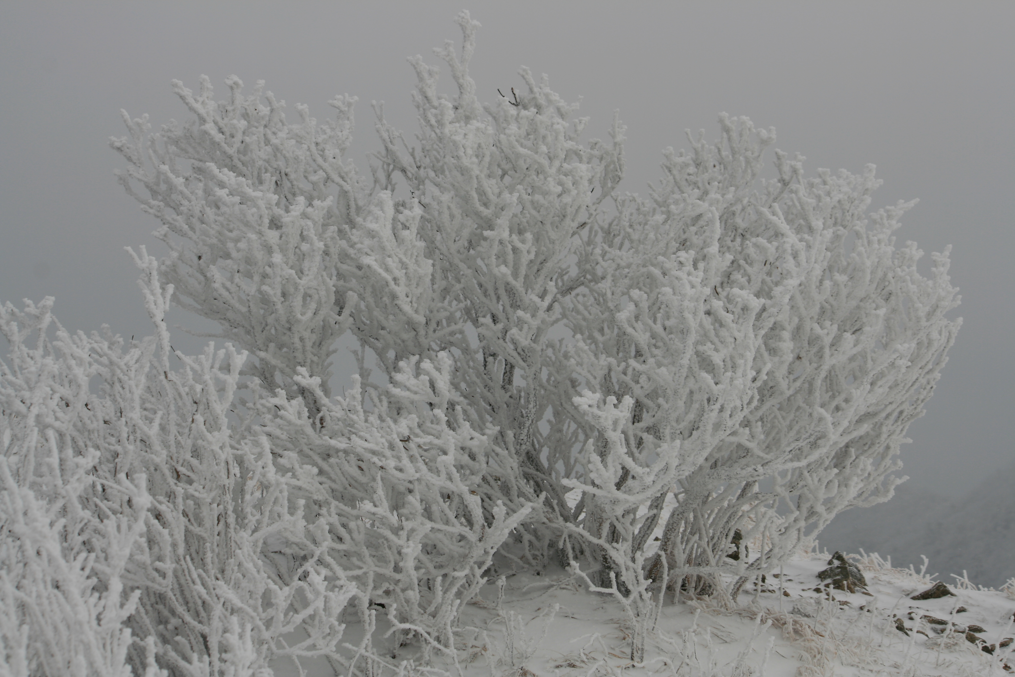 겨울산행의 멋은 무엇보다도 "눈꽃산행"이다. 30cm정도 내린 계방산은 올 겨울이 다 가기전엔 녹지 않는 그런 산이다. 전국적인 산꾼들이 주말엔 북새통을 이루는 겨울산의 대표산으로 손꼽히기도 한다. 눈꽃이 가지가지에 피어난 모습은 자연만이 만들어내는 작품이 아닌가 생각해 본다. 평일이라 한가한 탓에 나만의 시간으로 자연과 더불어 자신을 돌아보는 시간이 나로서는 제일로 행복한 시간이 아닌가 생각해본다.