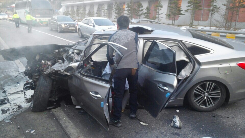 저희 남편과 저는 자동차를 갓길에 세우고 사고장소에 있었는데 지금 생각을 해보니 너무 부끄러워서 얼굴을 못 들정도로 창피합니다. 도로 밖으로 피는 엄청많이 나오고 있는데 그 흔한 119  112 이런 전화도 생각이 나지 않나 더라고요, 그런데 어디에서가 뛰어와서 운전석에 갇혀서 못 나오는 사람에게 다가가서 응급처치라고 해야 할까요. 한 남자가 하얀 천같은거 가지고 와서 피가 많이 떨어지는 운전사를 받쳐주면서 도로 밖에서 구경만 하고 있는 저희 가족을 지목하면서 119신고를 해달라고 하고 112신고를 해달라고 큰소리로 말을 하여 저희는 신고를 하게 되었습니다. 그 뒤로 119가 올때까지 도로 바닥에 4명정도가 누워있었는데 운전석에서 응급처치를 하시는 분께서 도로에 누워있는 분에게 이불을 덮어주라고 하고 119 올 동안 다친사람 옆에서 말을 시켜달라고 하여 저희 가족들은 시키는데로 하고 한 30분정도가 지났을까요. 119가 도착을 하더라고요. 만일 제일 처음에 응급처치를 하시고 저희 가족들을 지목하면서 119 신고 112신고를 해 달라고 말을 않 했더라면 과연 운전석 그 분은 어떻게 되었을까요? 저는 그 남자분이 너무나 훌륭하시다고 생각을 합니다. 뉴스를 보니 사고가 난 119지역이 영월소방서이더라고요. 그래서 이렇게 글을 씁니다. 너무나 훌륭하신 분이라서 혹시나 칭찬을 할수 있는 방법이 있을까요. 너무나 훌륭하신 분인거 같아요.  훌륭하신분에 자동차에 적힌 전화번호가 사진에 찍혀더라고요. 그래서 적어드립니다. 1600-4921이더라고요.