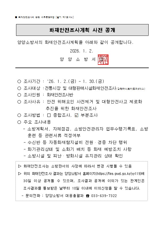 1월 화재안전조사계획 사전 공개