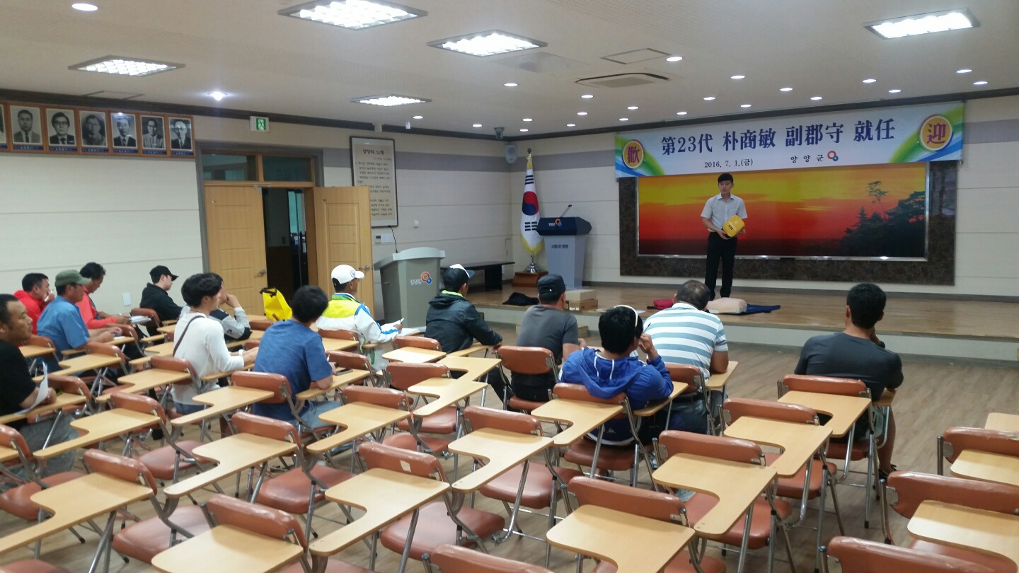양양소방서(서장 이수남)는 4일 오후 2시 양양군청 대회의실에서 양양군 수상인명구조원 22명을 대상으로 심폐소생술 및 응급처치교육을 실시했다.