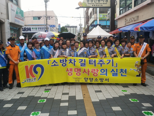양양소방서(조환근)는 9일 오전 11시 소방차 5대, 소방공무원 및 유관기관 40여명이 참석한 가운데 소방차의 신속한 재난현장 도착을 위한 ‘소방차 길 터주기’ 캠페인을 실시했다고 밝혔다.