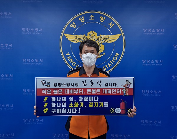 3.30.(화) 양양소방서(서장 김춘식)은 양양군수의 지목을 받아 119릴레이 챌린지에 동참하였습니다.