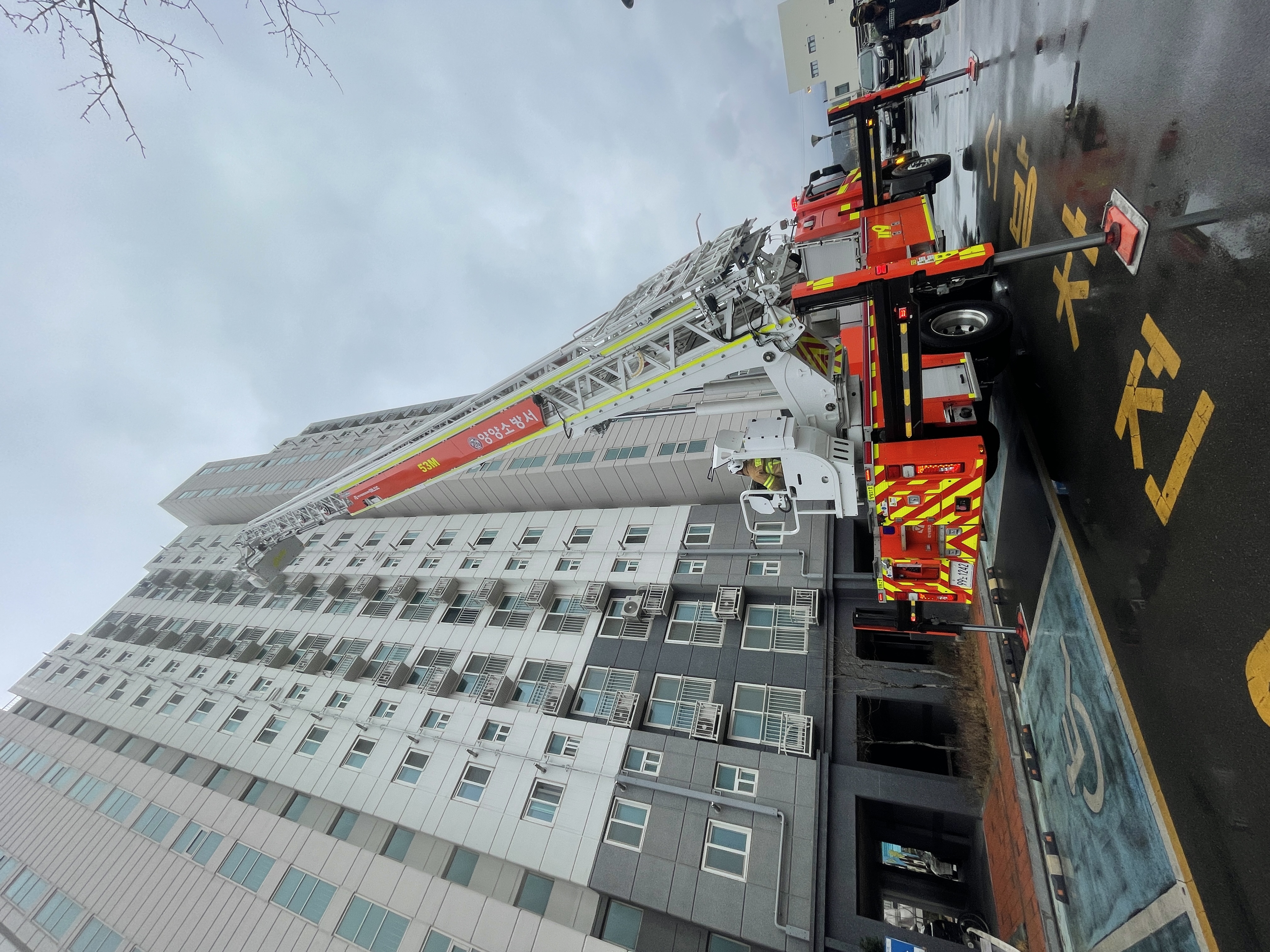 양양소방서(서장 김춘식)는 최근 발생한 대형 산림화재 예방 및 공동주택의 화재안전대책을 위하여 17일 양양읍 소재 코아루아파트에서 유관기관과 합동으로 소방훈련을 실시하였습니다.